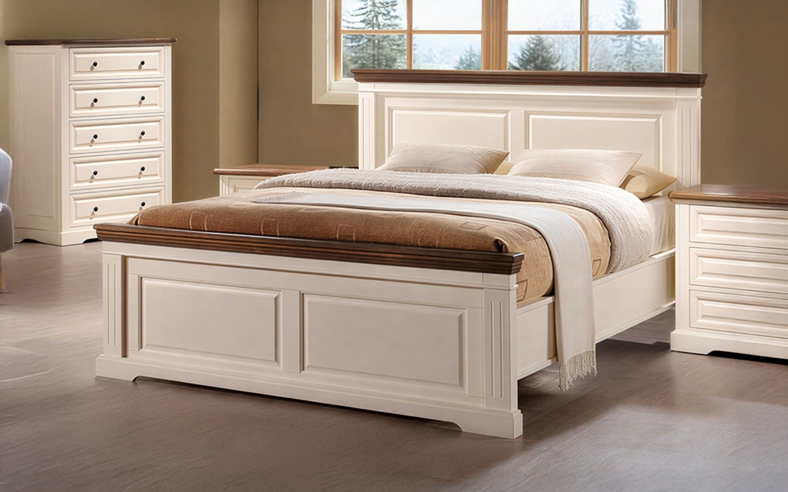 Cette chambre à coucher sur mesure en bois massif allie élégance, solidité et confort.