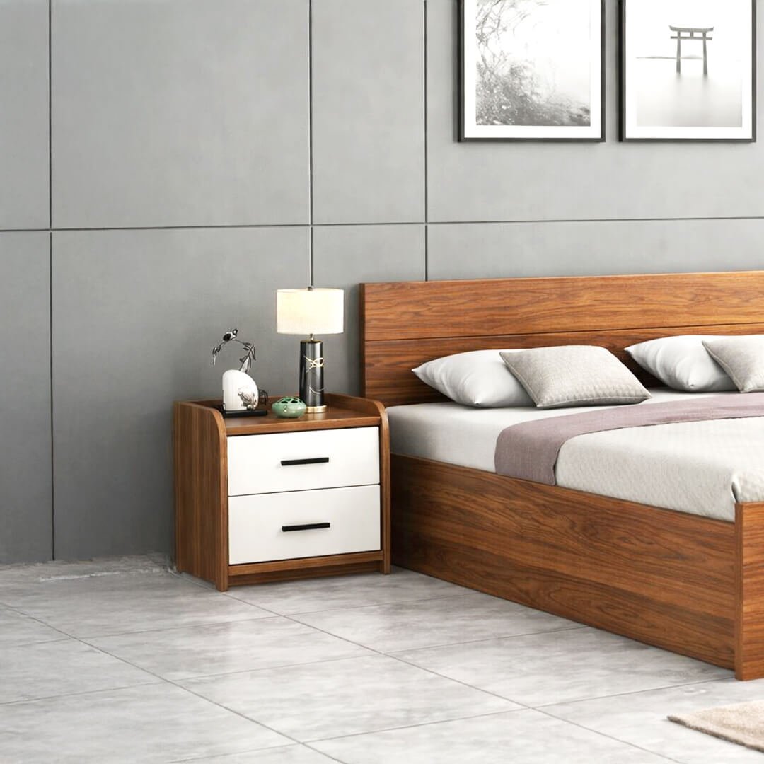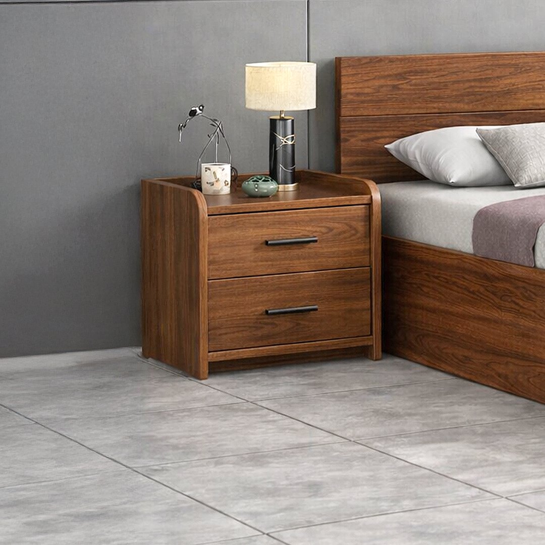 La table de chevet BOALUM avec 2 tiroirs est conçue pour apporter une touche contemporaine et chaleureuse à votre chambre. Sa finition effet noyer et ses lignes épurées s’intègrent parfaitement dans un intérieur moderne.