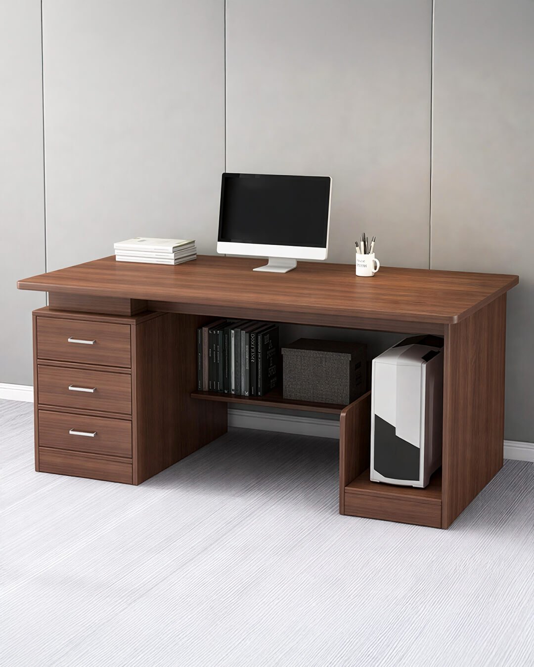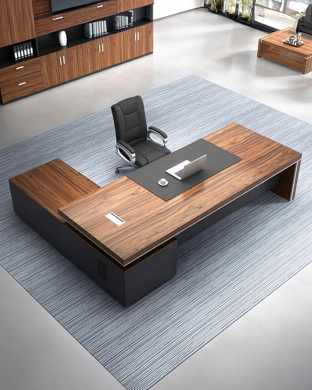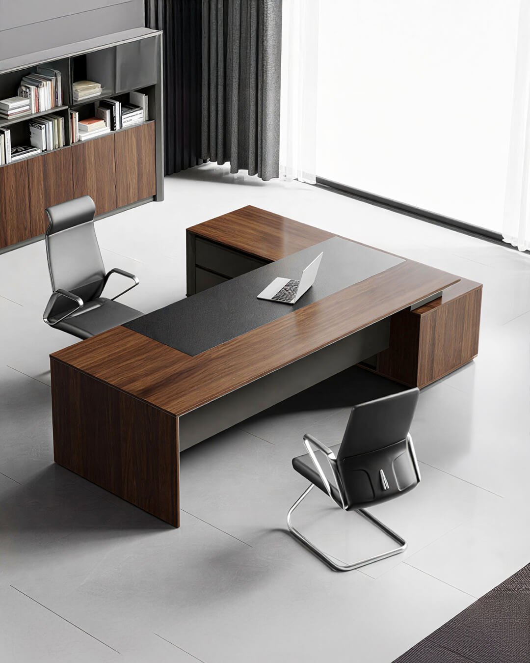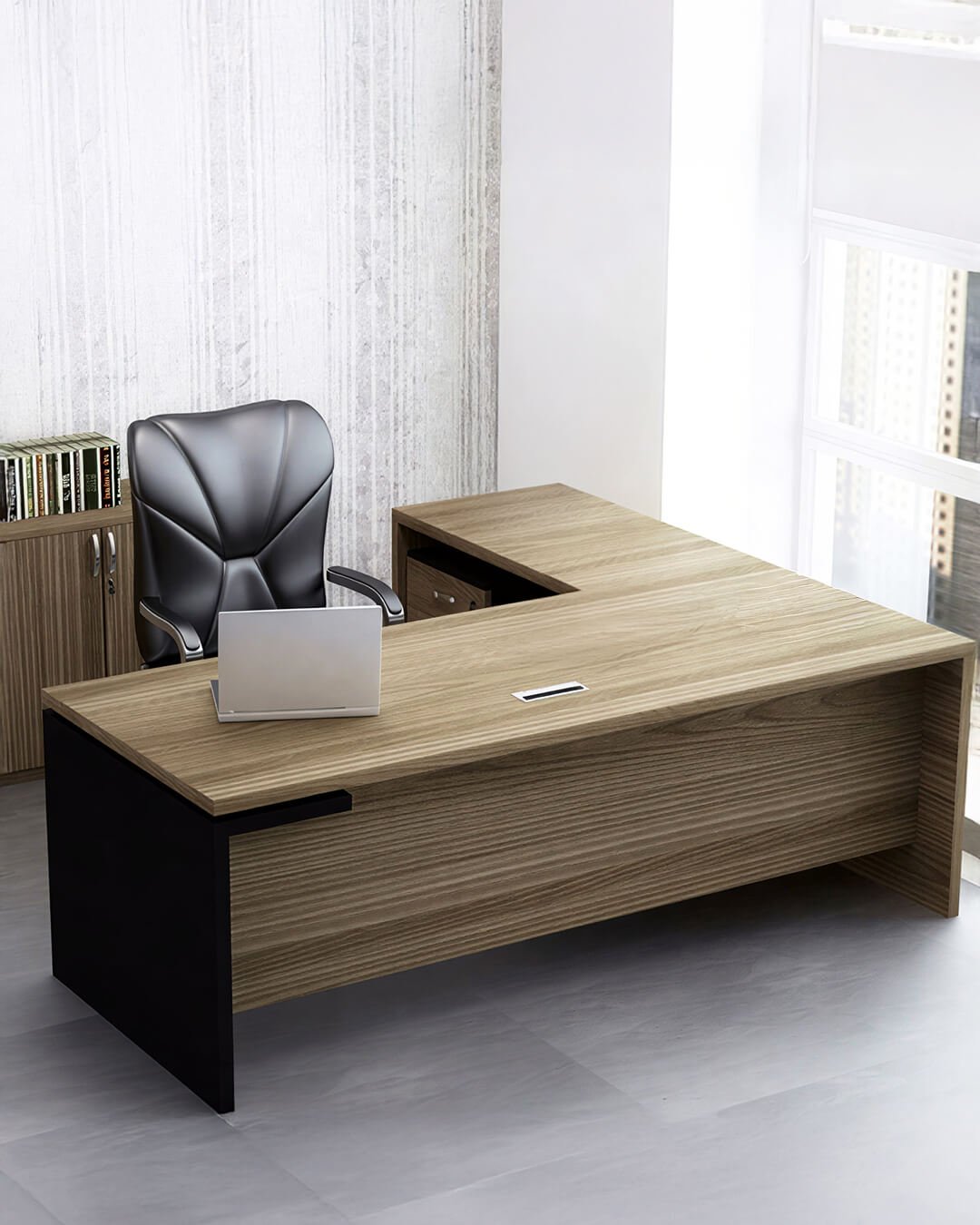 Bibliothèques, caissons et meubles de rangement conçus pour structurer l’espace et garder un environnement de travail organisé.